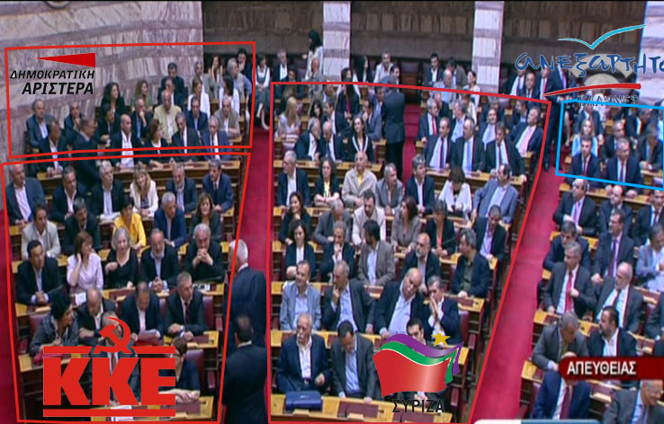 Αυτή είναι η διάταξη των βουλευτών των κομμάτων όπως προέκυψαν στις τελευταίες εκλογές. Η συγκεκριμένη Βουλή θα είναι η πλέον βραχύβια. Αν όμως σχηματιζόταν κυβέρνηση, με αυτό τον τρόπο θα κάθονταν οι βουλευτές στα έδρανα.