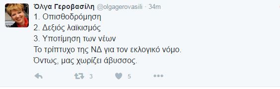 Συγκεκριμένα, στην ανάρτησή της στο Twitter η κ. Γεροβασίλη αναφέρει: