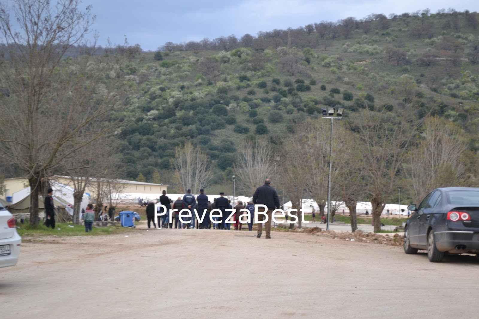 Η Όλγα Γεροβασίλη, έφτασε στο χώρο του στρατοπέδου παρέα με τους συνεργάτες της και αμέσως μετά, όλοι μαζί κατευθύνθηκαν εσωτερικά του στρατοπέδου, όπου βρίσκονται οι σκηνές των μεταναστών.