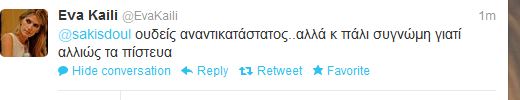 Με το που έγραψε αυτό, δέχθηκε όπως αναμενόταν βροχή σχολίων στο Twitter. Απαντώντας σε έναν από τους συνομιλητές της η ίδια επανέλαβε: