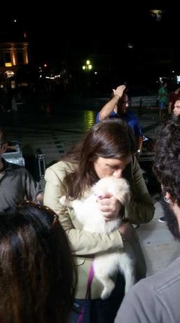 Μετά το τέλος της συγκέντρωσης κ. Κωνσταντοπούλου έβγαλε φωτογραφίες όχι μόνο με πολίτες  αλλά και με το σκυλάκι μιας νεαρής κοπέλας, το οποίο κράτησε μάλιστα με ιδιαίτερη στοργή.