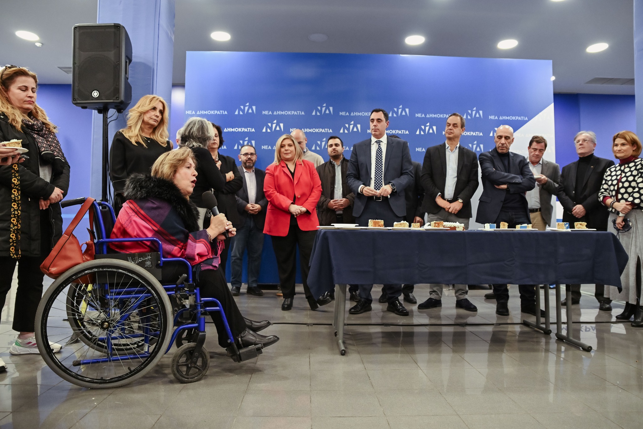 Την πρωτοχρονιάτικη πίτα της έκοψε η Νέα Δημοκρατία στα κεντρικά γραφεία του κόμματος, παρουσία του υφυπουργού παρά τω πρωθυπουργώ και διευθυντή του γραφείου του πρωθυπουργού, Γιάννη Μπρατάκου, της γραμματέως της Πολιτικής Επιτροπής Μαρίας Συρεγγέλα, του γενικού διευθυντή του κόμματος Γιάννη Σμυρλή, του γραμματέα Οργανωτικού και αναπληρωτή γραμματέα ΠΕ Στέλιου Κονταδάκη, του αναπληρωτή γραμματέα της Πολιτικής Επιτροπής Χριστόφορου Μπουτσικάκη, των μελών του διαγραμματειακού και του διατομεακού και των εργαζομένων του κόμματος.