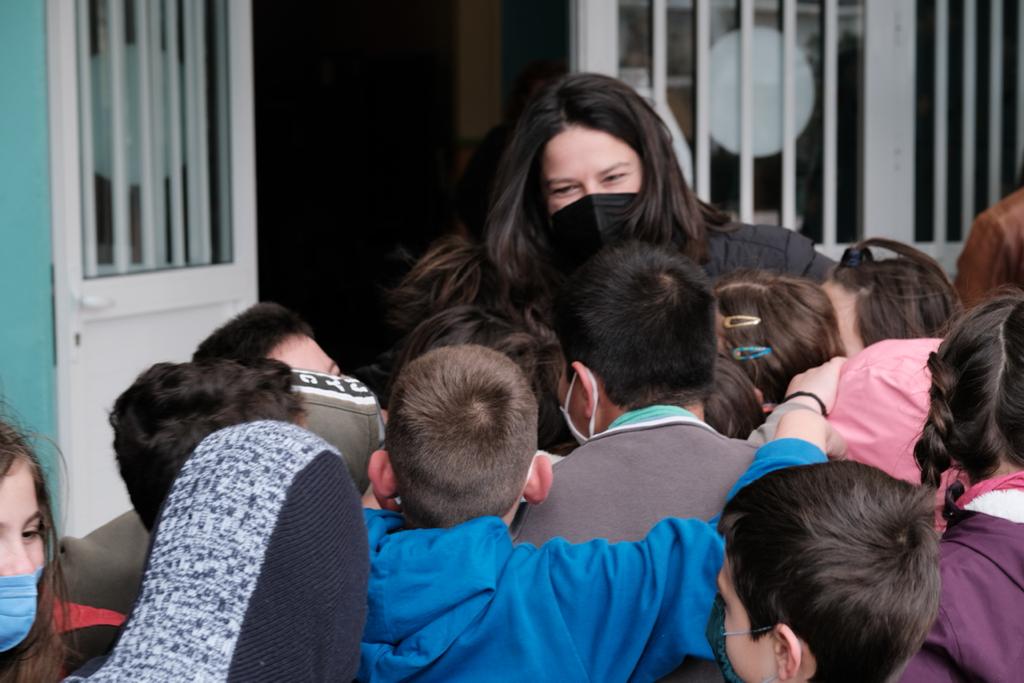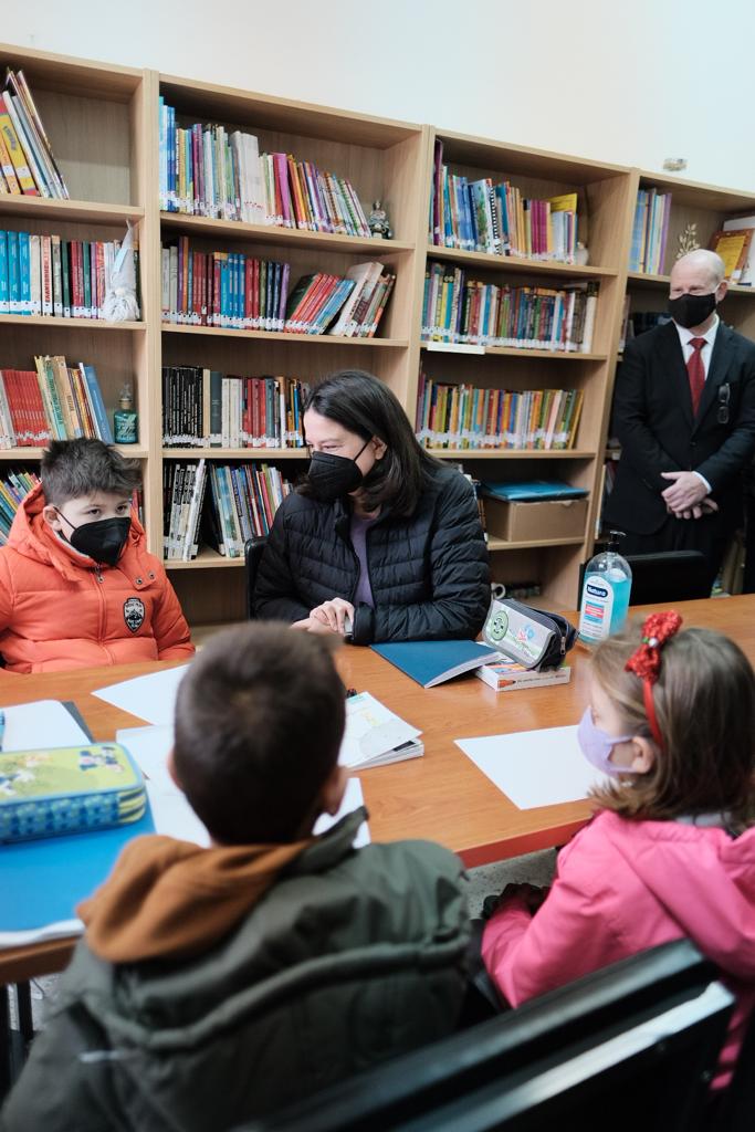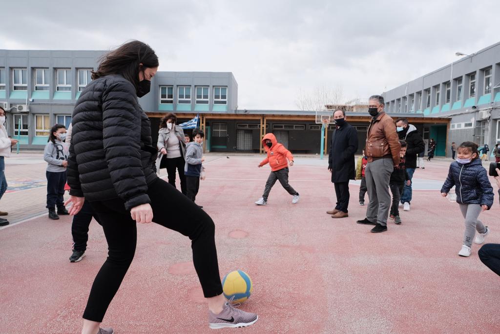 Όπως αναφέρεται σε σχετική ανακοίνωση, η Υπουργός Παιδείας συζήτησε με τα παιδιά, άκουσε τους τρόπους με τους οποίους οι συμμαθητές και οι εκπαιδευτικοί τους τα έχουν υποδεχτεί και ενσωματώσει, δείχνοντάς τους παιχνίδια, μαθαίνοντάς τους λέξεις στα ελληνικά. Ο μικρός Αλέξανδρος είπε στην Υπουργό ότι του άρεσε πολύ το ποδόσφαιρο και έπαιξαν μαζί, καθώς και με τους συμμαθητές του, στο προαύλιο.