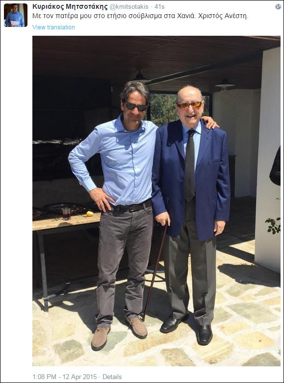 Τόσο ο Κυριάκος Μητσοτάκης, όσο και η Ντόρα Μπακογιάννη “ανέβασαν” φωτογραφίες στους προσωπικούς τους λογαριασμούς στο twitter, έχοντας στο πλάι τους τον πατέρα τους και επίτιμο πρόεδρο της Νέας Δημοκρατίας, Κωνσταντίνο Μητσοτάκη.