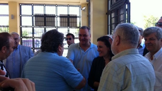 Το παρών στην υποδοχή της υπουργού δίνουν οι βουλευτές της ΝΔ Μανώλης Κεφαλογιάννης, Μάξιμος Σενετάκης και Λευτέρης Αυγενάκης, ο πρόεδρος της ΝΟΔΕ Γρηγόρης Ροκαδάκης και άλλα στελέχη της ΝΔ.