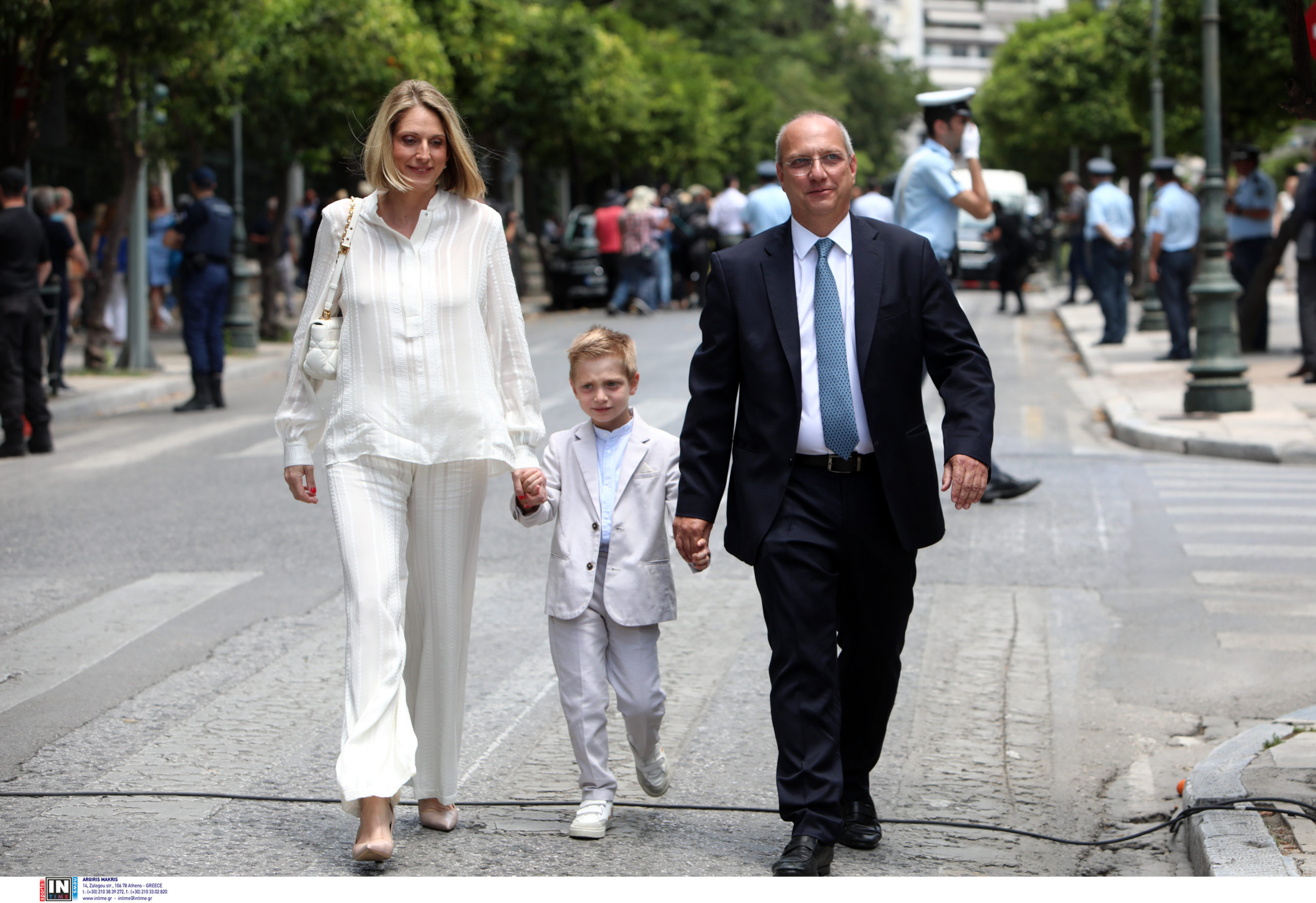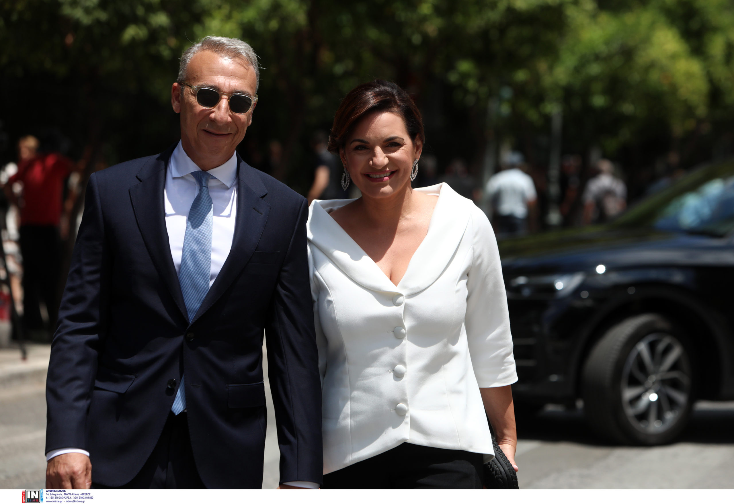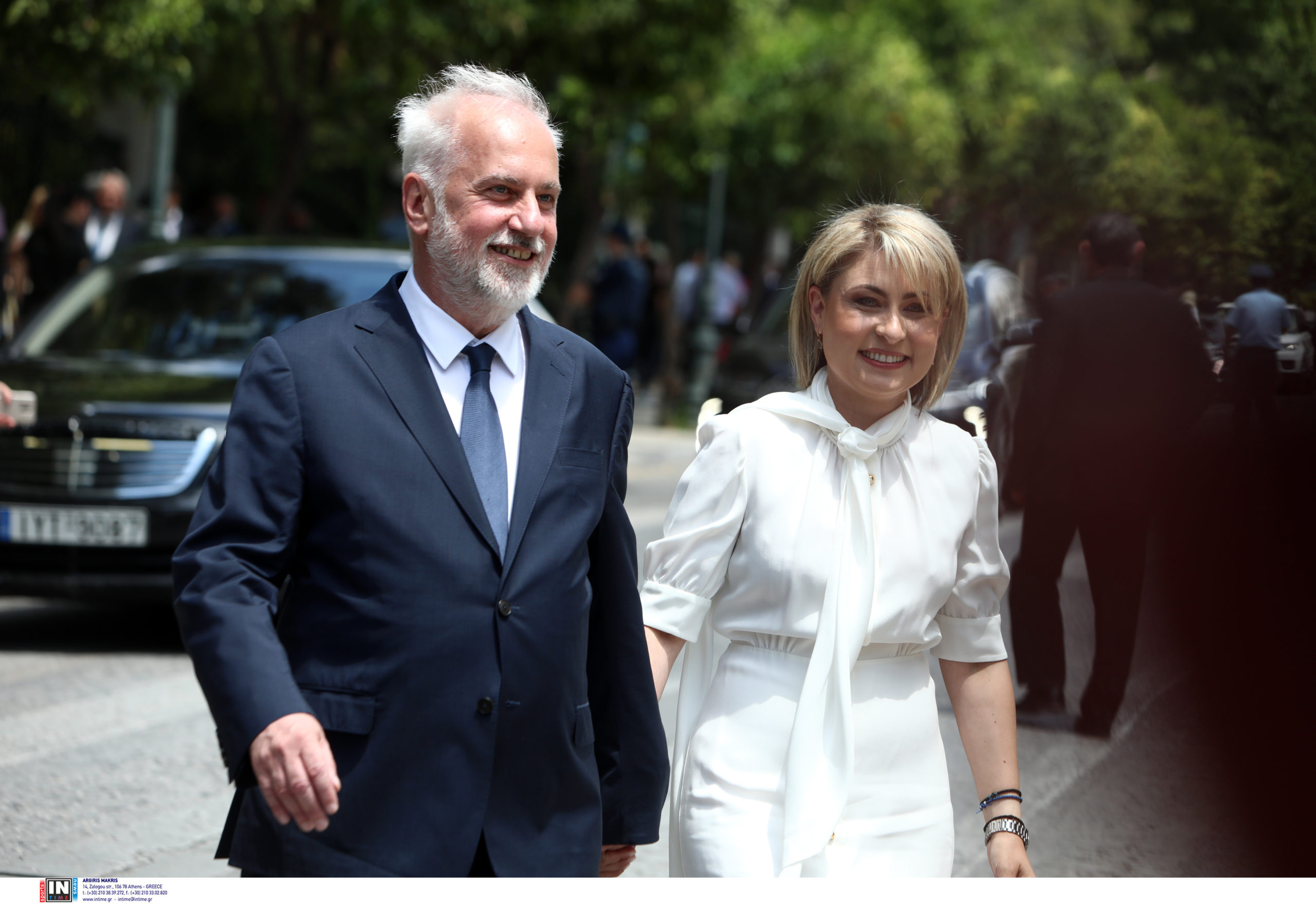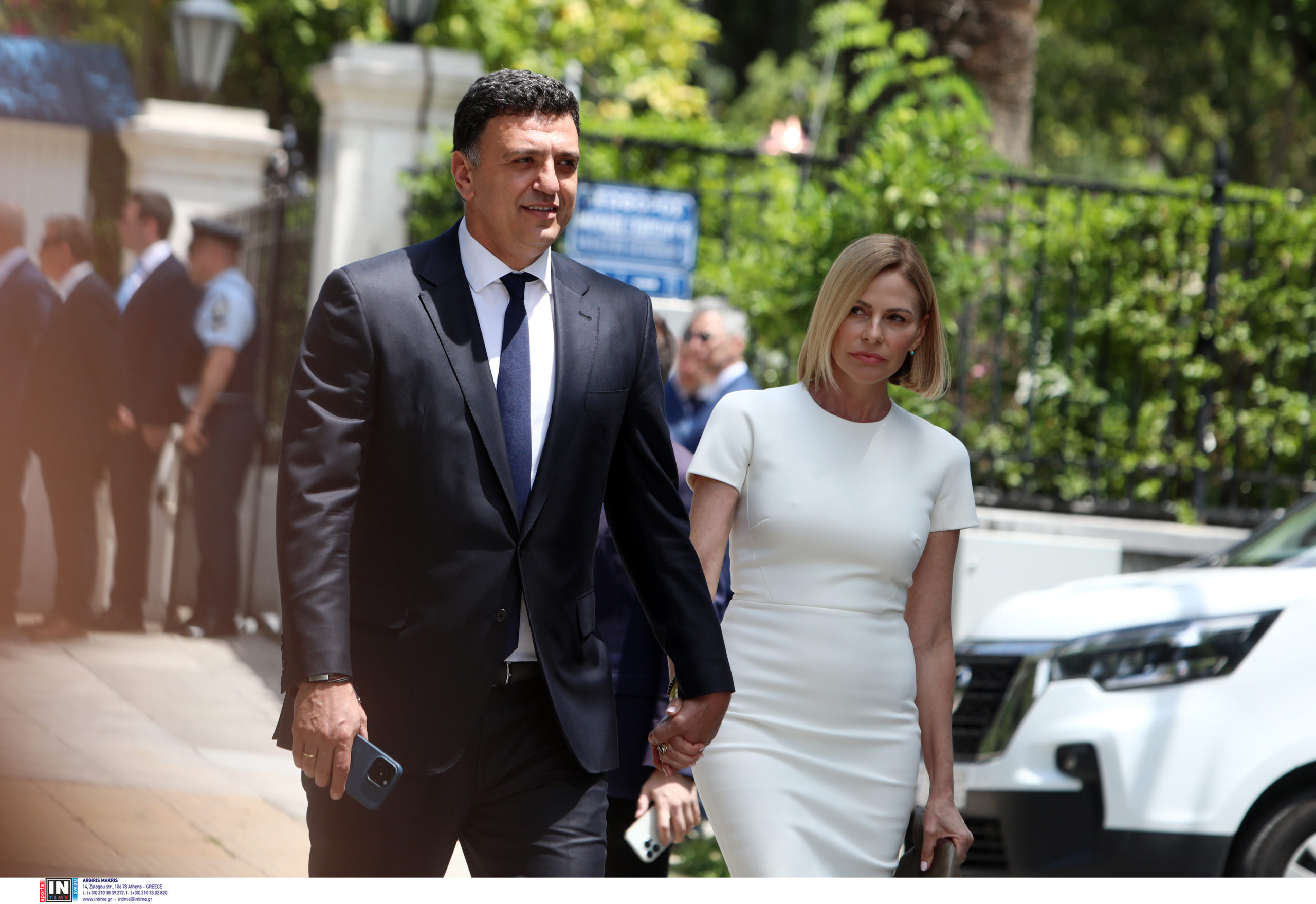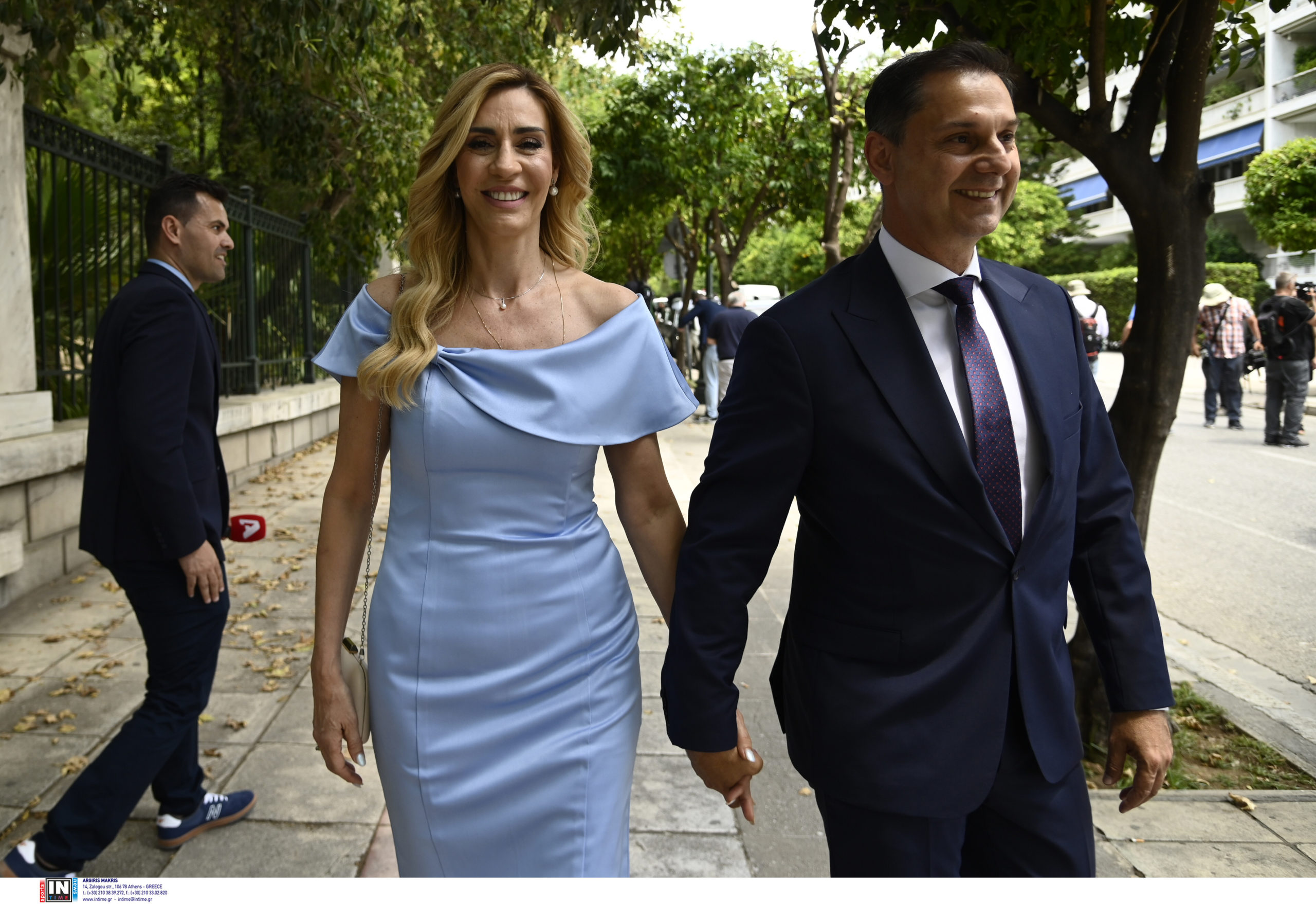 Τρίτος στη σειρά ο Βασίλης Κικίλιας, νέος υπουργός Κλιματικής Κρίσης και Πολιτικής Προστασίας, ο οποίος συνοδευόταν από την σύζυγό του, Τζένη Μπαλατσινού.