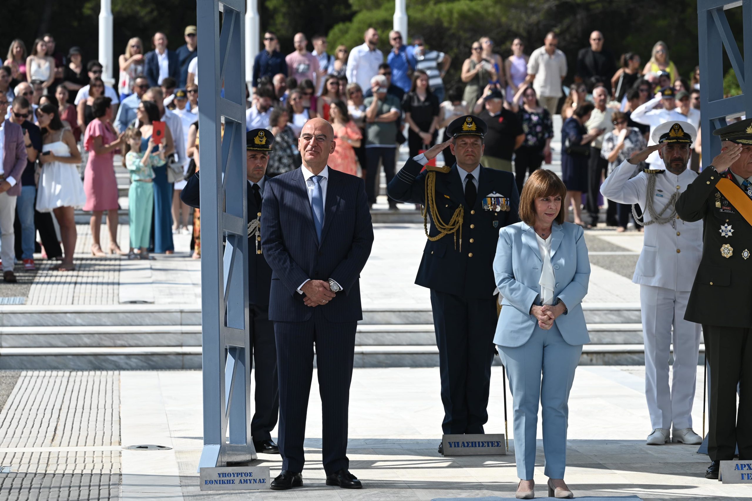 Παρόντες στην τελετή ήταν ο Αρχηγός ΓΕΕΘΑ Στρατηγός Κωνσταντίνος Φλώρος, ο Αρχηγός ΓΕΑ Αντιπτέραρχος (Ι) Θεμιστοκλής Μπουρολιάς, ο Αρχηγός ΓΕΣ Αντιστράτηγος Άγγελος Χουδελούδης, ο Αρχηγός ΓΕΝ Αντιναύαρχος Ιωάννης Δρυμούσης ΠΝ, εκπρόσωποι των Σωμάτων Ασφαλείας, των κομμάτων, της Περιφερειακής και της Τοπικής Αυτοδιοικήσεως, καθώς και της Εκκλησίας.