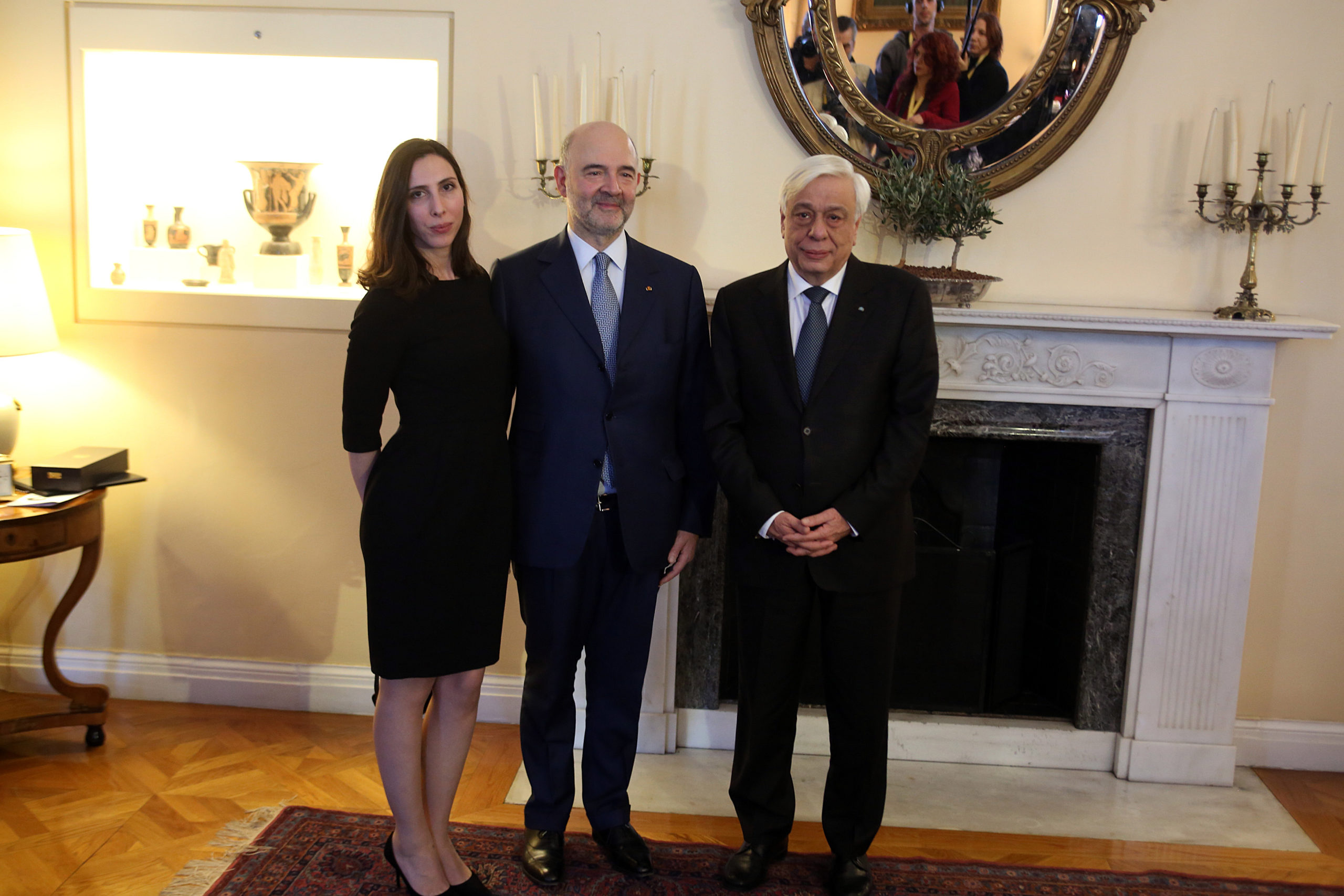 Στην τελετή Παρασημοφόρησης στο Προεδρικό Μέγαρο παρέστησαν επίσης, ο Επίτροπος Μετανάστευσης, Εσωτερικών Υποθέσεων και Ιθαγένειας της ΕΕ κ. Δημήτρης Αβραμόπουλος, ο Επικεφαλής της Αντιπροσωπείας της Ευρωπαϊκής Επιτροπής στην Ελλάδα κ. Πάνος Καρβούνης και ο Γάλλος Πρέσβης στην Αθήνα κ. Κριστόφ Σαντεπί, καθώς και η σύζυγος του Πιέρ Μοσκοβισί κ. Aν Μισέλ Μπαστερί.