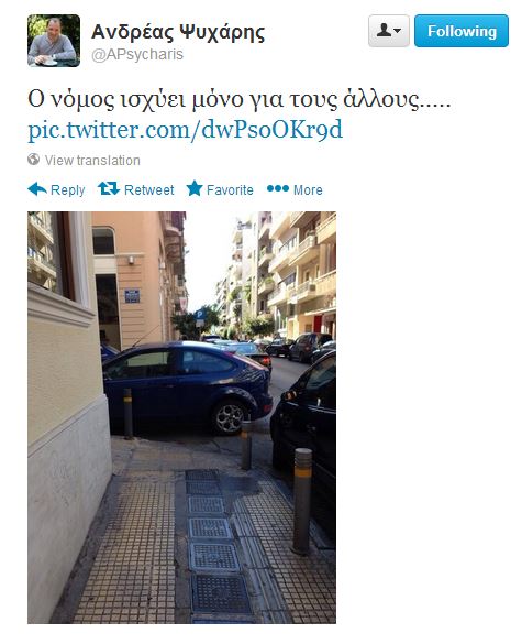 Μέσω ενός κυριακάτικου tweet, ο βουλευτής της Νέας Δημοκρατίας Ανδρέας Ψυχάρης, εντόπισε την λάθος συμπεριφορά ενός οδηγού.