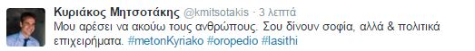 Φωτογραφία από την περιοδεία του στο νομό Λασιθίου, στην οποία συνομιλεί στο δρόμο με έναν πολίτη, ανέβασε στον προσωπικό του λογαρισμό στο twitter ο υποψήφιος για την προεδρία της ΝΔ, Κυριάκος Μητσοτάκης. Ο κ. Μητσοτάκης γράφει: