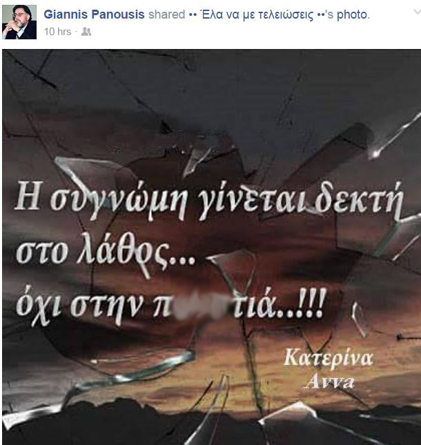 Πολλές συζητήσεις και σχόλια προκάλεσε στα social media μία ανάρτηση του πρώην υπουργού Προστασίας του Πολίτη, Γιάννη Πανούση στον προσωπικό του λογαριασμό στο Facebook.