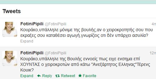 Άμεση ήταν η αντίδραση της Φωτεινής Πιπιλή στα όσα είπε εις βάρος της πριν από λίγο χωρίς να την κατονομάσει από το βήμα της Βουλής ο Γιάννης Κουράκος.