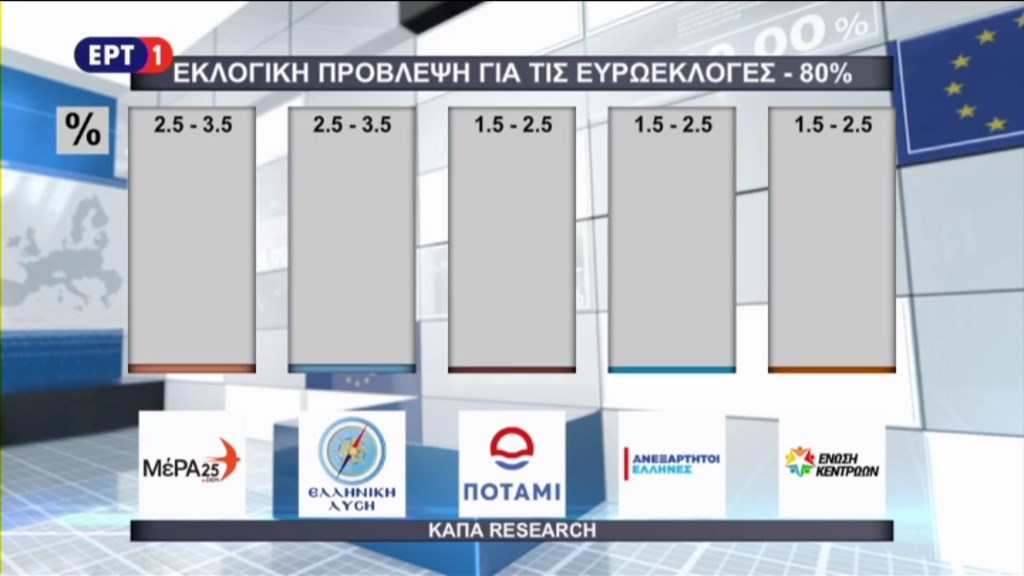 Η Κάπα Research ανακοίνωσε την πρώτη εκτίμηση του εκλογικού αποτελέσματος για τις ευρωεκλογές για λογαριασμό της ΕΡΤ.