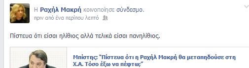 «Πίστευα ότι είσαι ηλίθιος αλλά τελικά είσαι πανηλίθιος», έγραψε στο Facebook η Ραχήλ Μακρή.
