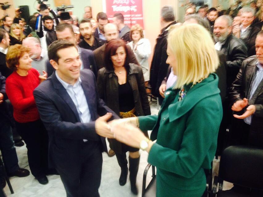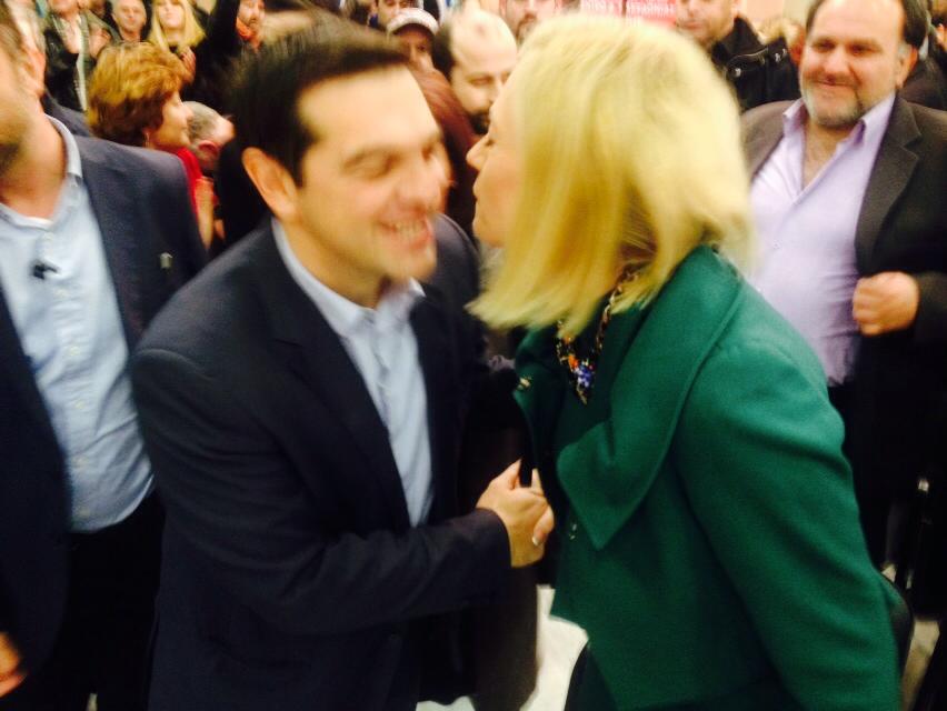 Θερμό ασπασμό είχαν ο Αλέξης Τσίπρας και η Ραχήλ Μακρή, στο Εκθεσιακό Κέντρο των Κοίλων στην Κοζάνη όπου πραγματοποιήθηκε εκδήλωση στο πλαίσιο των Περιφερειακών προγραμματικών συσκέψεων του ΣΥΡΙΖΑ.