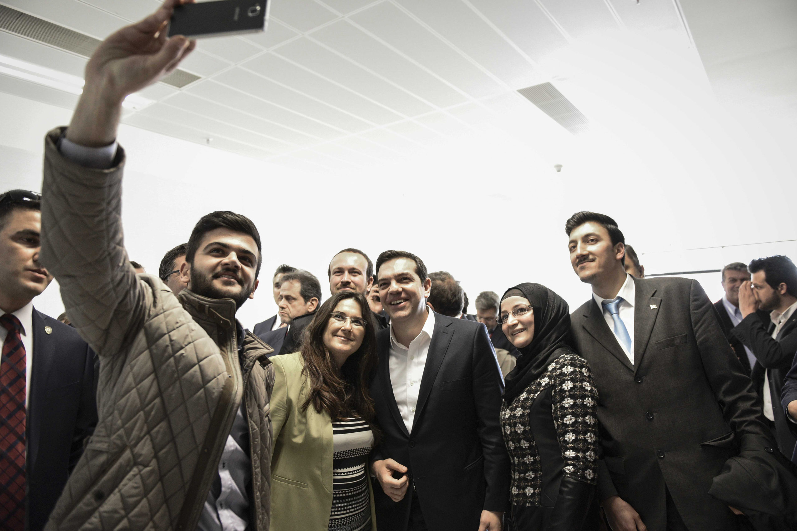 Φωτογραφία selfie με τον κόσμο που βρισκόταν στο αεροδρόμιο της Σμύρνης έβγαλε ο Πρωθυπουργός, Αλέξης Τσίπρας μετά την άφιξη του.