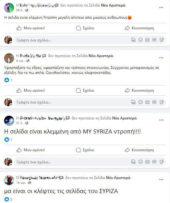 Η κίνηση αυτή έχει προκαλέσει την οργή χρηστών των social media, που κατηγορούν τα στελέχη της «Νέας Αριστεράς» ότι υφάρπαξαν την σελίδα του ΣΥΡΙΖΑ.