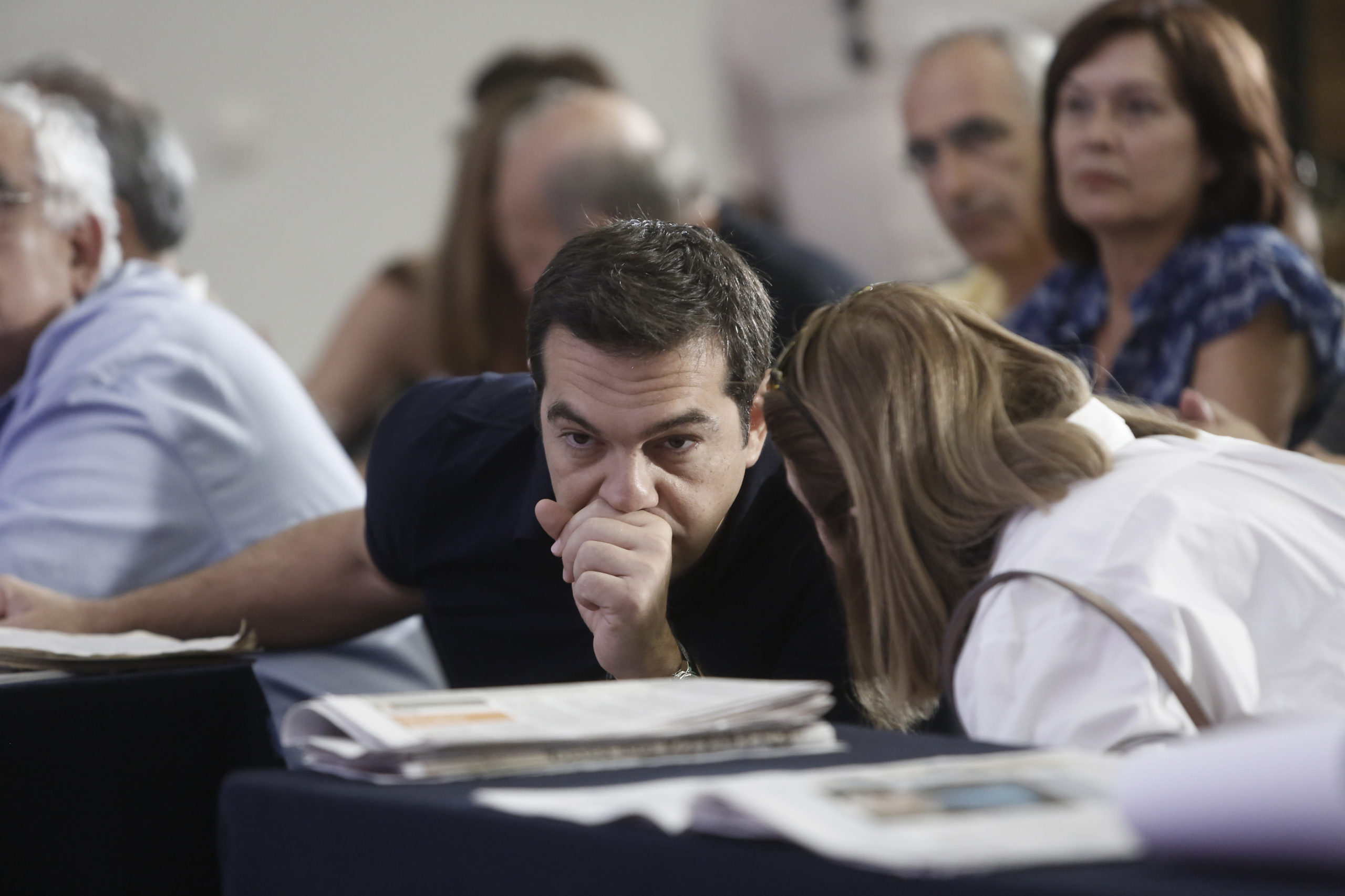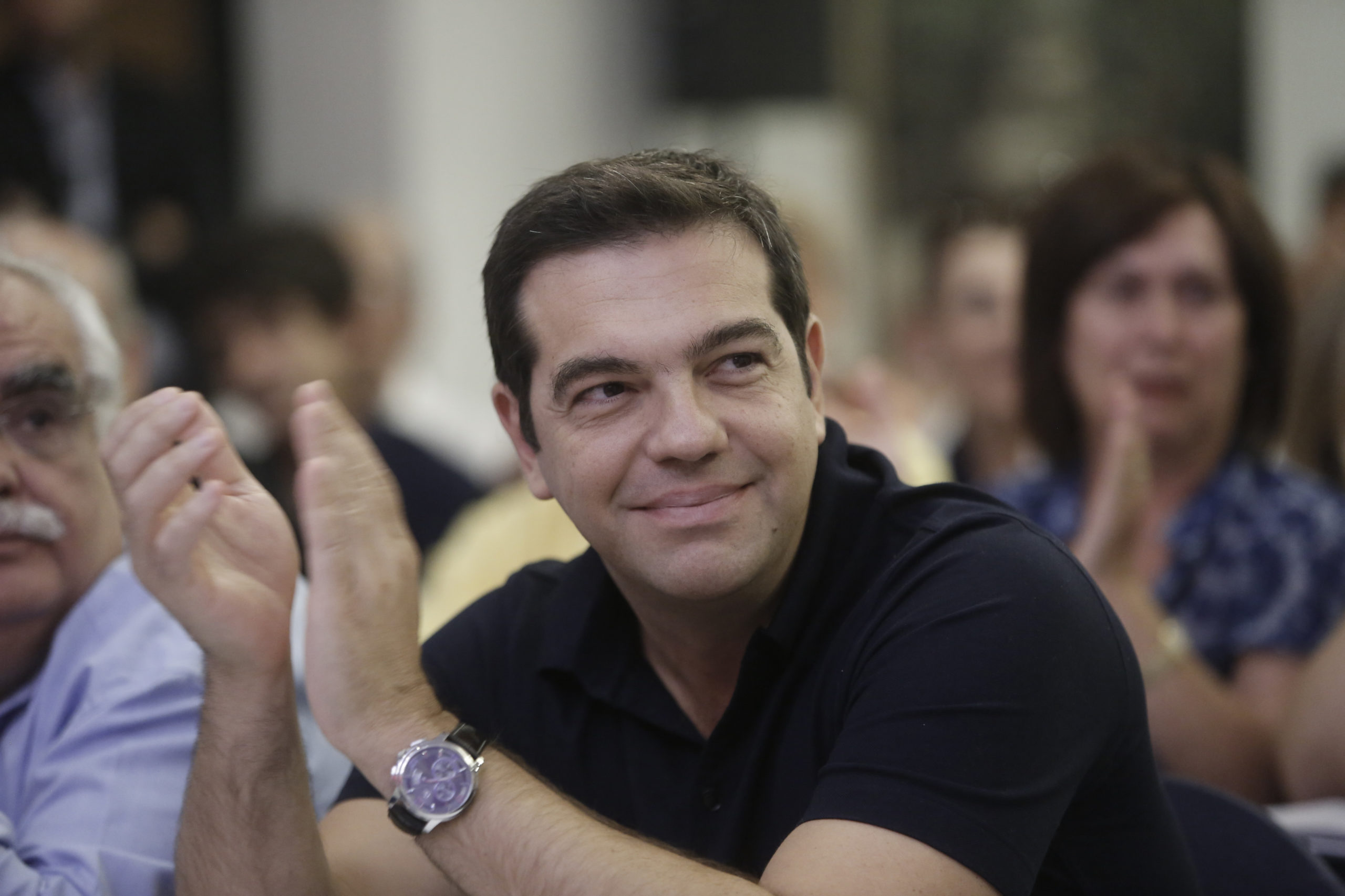 Ο κ. Τσίπρας προσήλθε στον Πολυχώρο Πολιτισμού «ΑΘΗΝΑΪΣ» φορώντας ένα μπλε σκούρο μπλουζάκι πόλο και ασορτί κοστούμι.