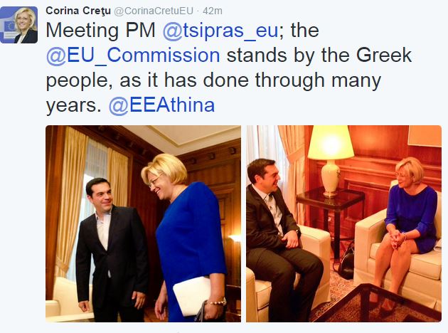 Ο πρωθυπουργός Αλέξης Τσίπρας, είχε συνάντηση το πρωί με την επίτροπο αρμόδια για την Περιφερειακή Πολιτική της Ευρωπαϊκής Ένωσης, Κορίνα Κρέτσου, στο Μέγαρο Μαξίμου.