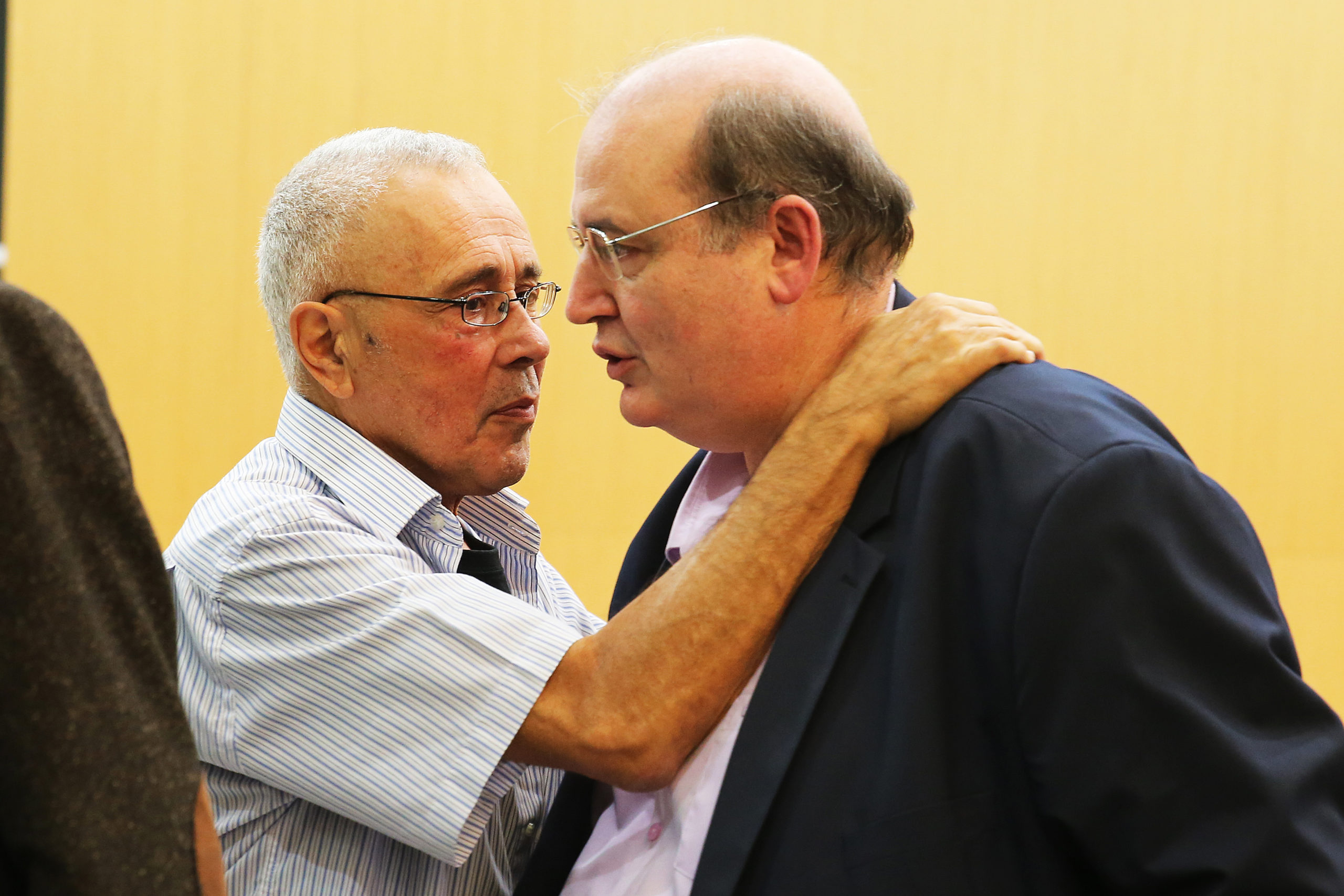 Θερμά αγκάλιασαν τον τέως υπουργό Παιδείας Έρευνας και Θρησκευμάτων Νίκο Φίλη ο νέος υπουργός Κωνσταντίνος Γαβρόγλου και ο νέος υφυπουργός Κωνσταντίνος Ζουράρις κατά τη διάρκεια της τελετής παράδοσης – παραλαβής.