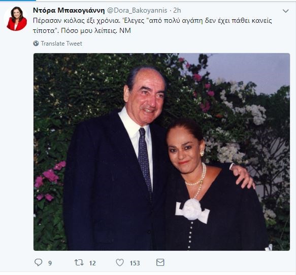 “Πέρασαν κιόλας έξι χρόνια. ‘Ελεγες “από πολλή αγάπη δεν έχει πάθει κανείς τίποτα”. Πόσο μου λείπεις. ΝΜ” έγραψε η βουλευτής της Νέας Δημοκρατίας ανεβάζοντας μια φωτογραφίας των γονιών της.