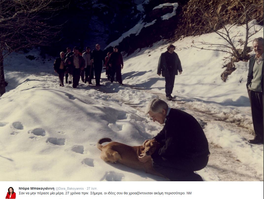 «Σαν να μην πέρασε μία μέρα, 27 χρόνια πριν. Σήμερα, οι ιδέες σου θα χρειαζόντουσαν ακόμη περισσότερο», έγραψε στον προσωπικό της λογαριασμό στο Twitter, η Ντόρα Μπακογιάννη με αφορμή τη συμπλήρωση 27 χρόνων από την δολοφονία του Παύλου Μπακογιάννη, ποστάροντας επίσης την παρακάτω φωτογραφία.