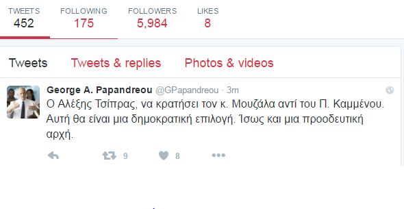 Πριν από λίγο στο Twitter o Γιώργος Παπανδρέου έγραψε για τον Γιάννη Μουζάλα: