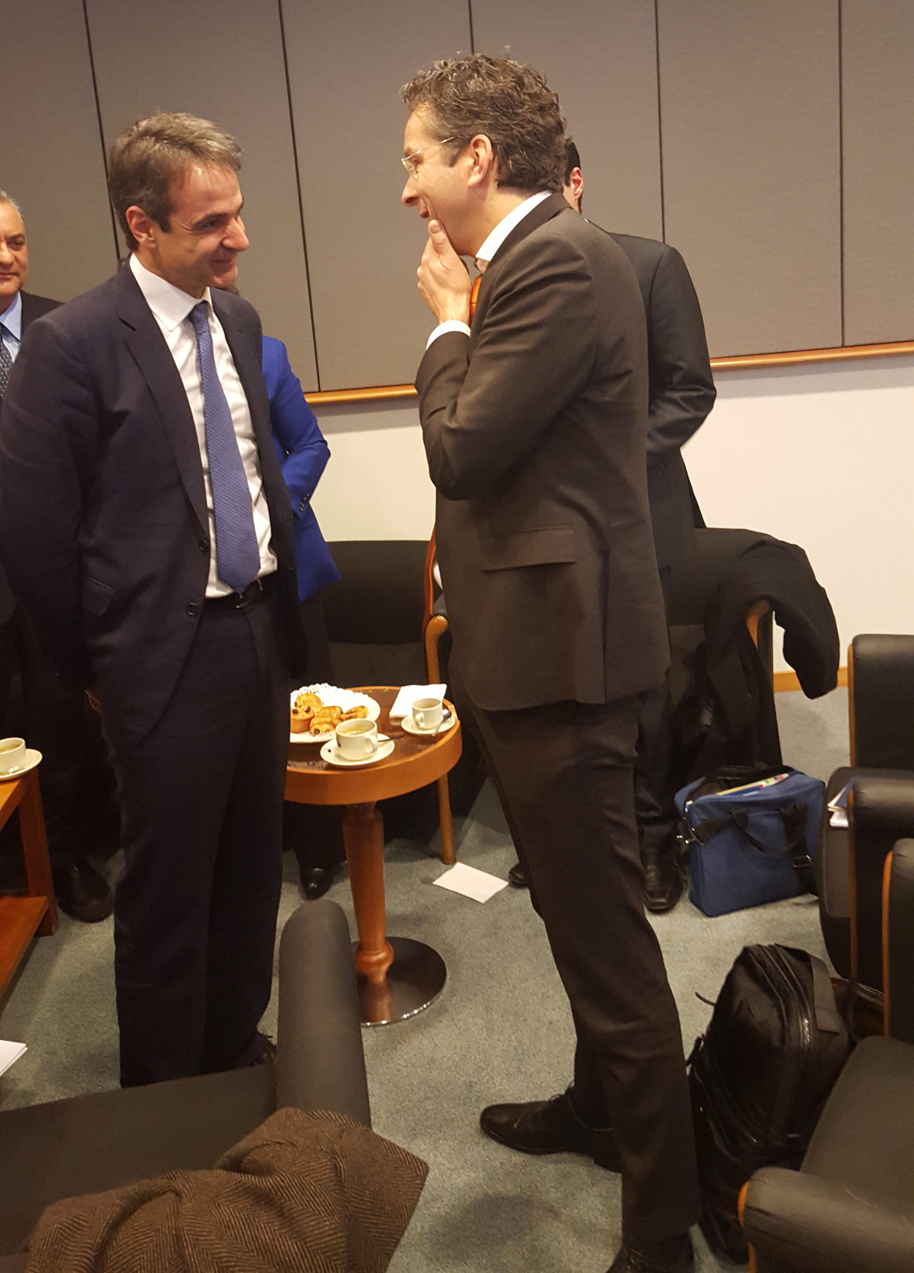 Ολιγόλεπτη συνάντηση με τον Πρόεδρο της Νέας Δημοκρατίας, Κυριάκο Μητσοτάκη είχε νωρίτερα ο επικεφαλής του Eurogroup Γερούν Ντάισελμπλουμ, ενώ όπως φαίνεται και στις φωτογραφίες δεν έλειψαν και τα χαμόγελα ανάμεσα τους.
