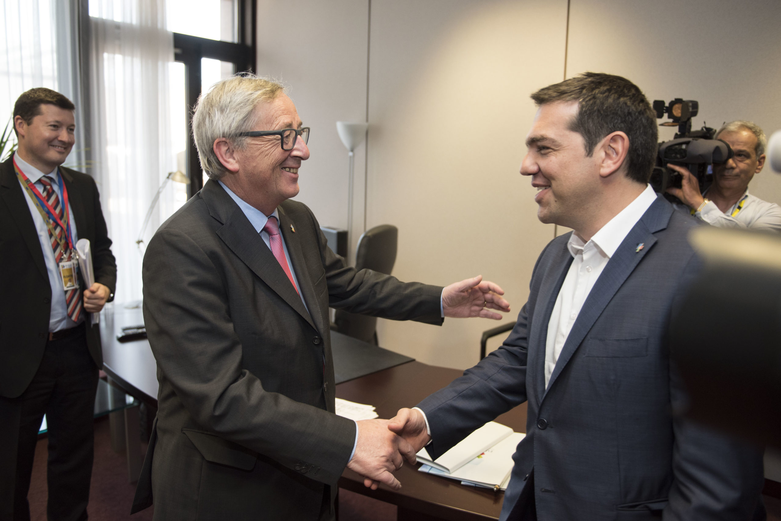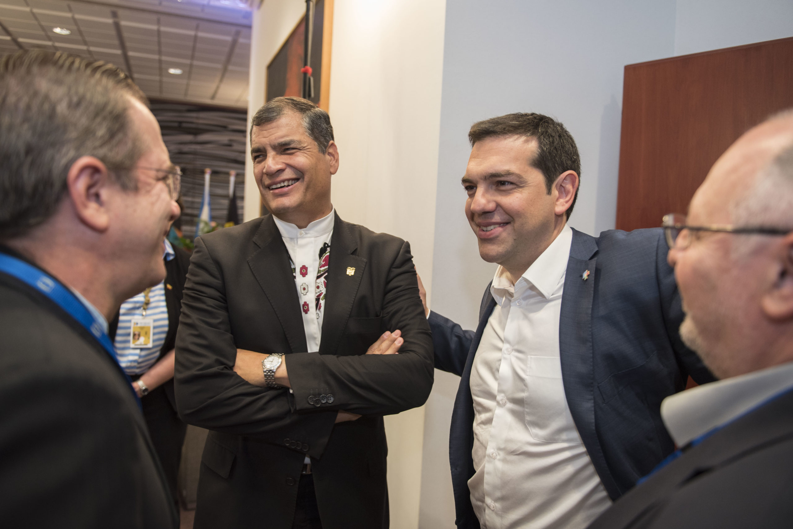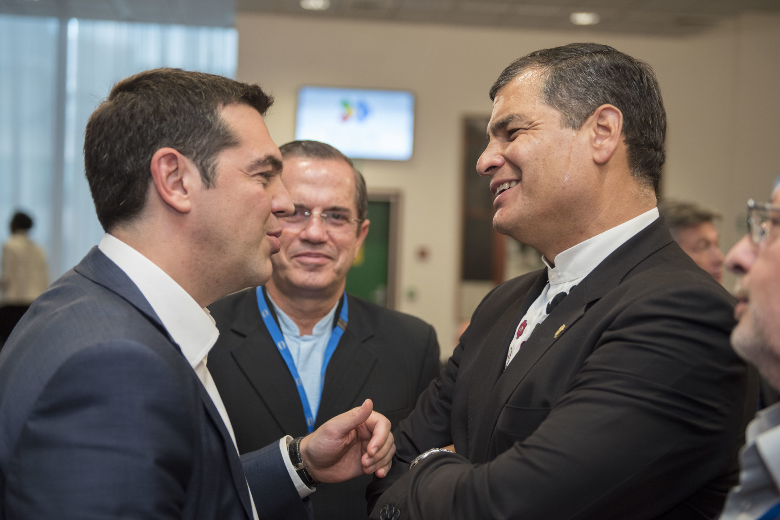 Δείτε στιγμιότυπα από τη συνάντηση του Έλληνα πρωθυπουργού, Αλέξη Τσίπρα, με τον πρόεδρο της Ευρωπαϊκής Επιτροπής, Ζαν Κλοντ Γιούνκερ, και τον Πρόεδρο του Ισημερινού, Ραφαέλ Κορρέα, στο περιθώριο της Συνόδου Κορυφής των Βρυξελλών.