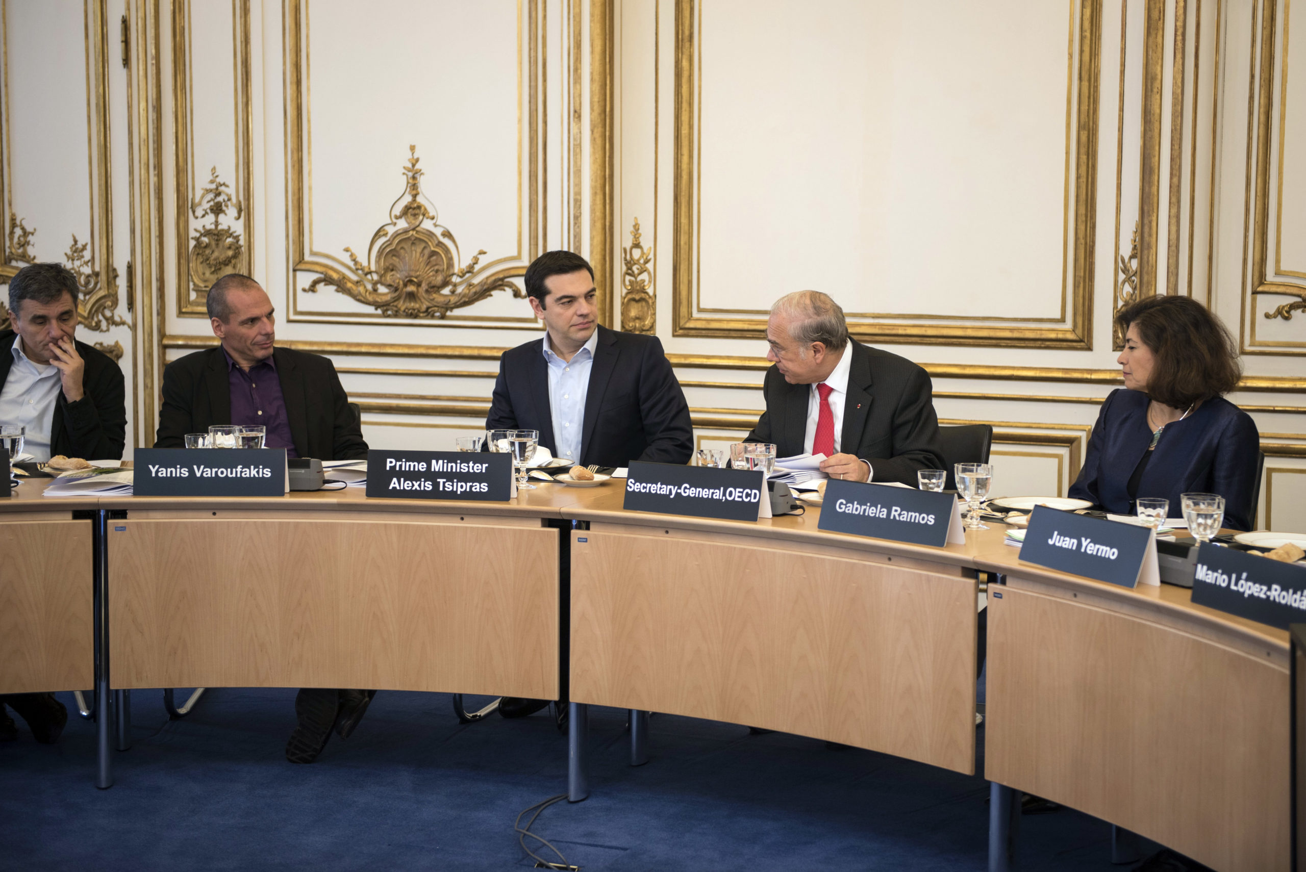 Με τον γενικό γραμματέα του ΟΟΣΑ, Άνχελ Γκουρία και με εμπειρογνώμονες του Οργανισμού συναντάται ο Πρωθυπουργός, Αλέξης Τσίπρας στο Παρίσι.