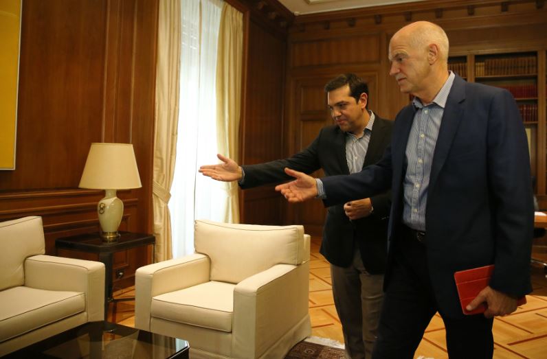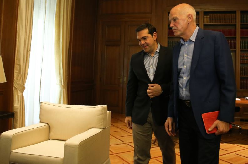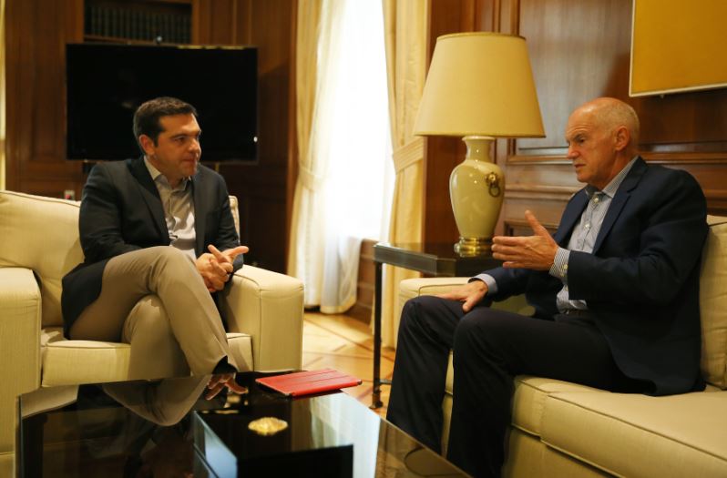 Τον πρόεδρο του Κινήματος Δημοκρατών Σοσιαλιστών Γιώργο Παπανδρέου, υποδέχτηκε, στο Μέγαρο Μαξίμου, ο Αλέξης Τσίπρας.