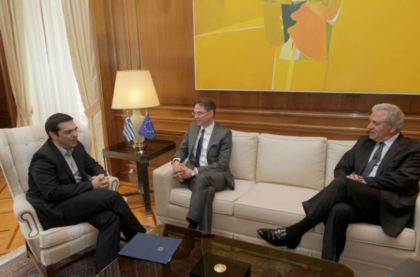 Με τον αντιπρόεδρο της Ευρωπαϊκής Επιτροπής, Γιούρκι Κατάινεν, αρμόδιο για την Απασχόληση, την Ανάπτυξη, τις Επενδύσεις και την Ανταγωνιστικότητα, συναντήθηκε στο Μέγαρο Μαξίμου, ο Πρωθυπουργός, Αλέξης Τσίπρας. Όπως φαίνεται και στις φωτογραφίες, στην συνάντηση έδωσε το παρών και ο Ευρωπαίος Επίτροπος για θέματα μετανάστευσης, Δημήτρης Αβραμόπουλος.