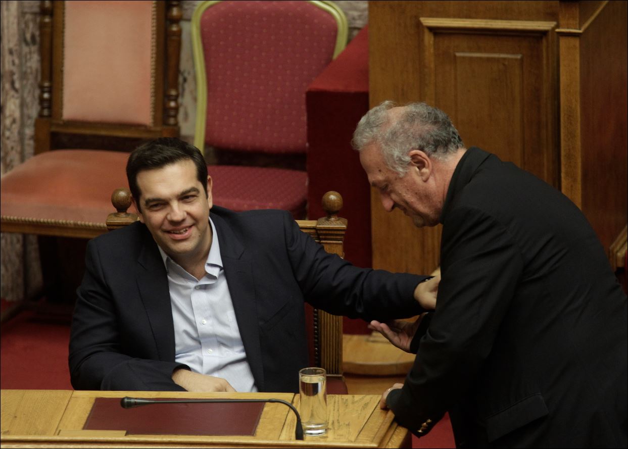 Ο φωτογραφικός φακός «συνέλαβε» τον Πρωθυπουργό Αλέξη Τσίπρα να συνομιλεί με τον βουλευτή του ΠΑΣΟΚ Κώστα Σκανδαλίδη κατά τη διάρκεια της συζήτησης επί των προγραμματικών δηλώσεων της κυβέρνησης στη Βουλή.