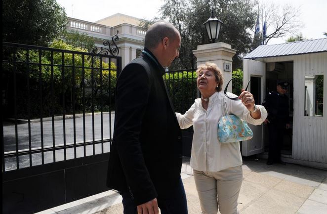 Θερμή υποδοχή επεφύλασσε μια γυναίκα στον Γιάνη Βαρουφάκη έξω από το Μέγαρο Μαξίμου.