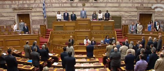 Παρουσία μελών των οικογενειών τους, τα μέλη του Κοινοβουλίου τήρησαν ενός λεπτού σιγή στη μνήμη των αγωνιστών της Δημοκρατίας, πρώην βουλευτών Γρηγόρη Λαμπράκη και Γιώργου Τσαρουχά.