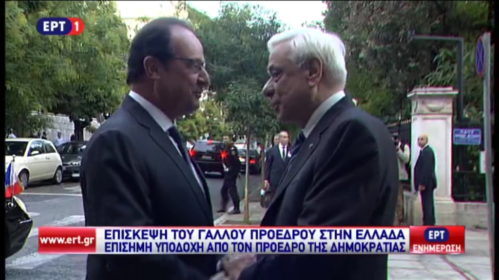 Ο πρόεδρος της Δημοκρατίας Προκόπης Παυλόπουλος είχε θερμή χειραψία με τον Γάλλο πρόεδρο Φρανσουά Ολάντ έξω από το Προεδρικό Μέγαρο.