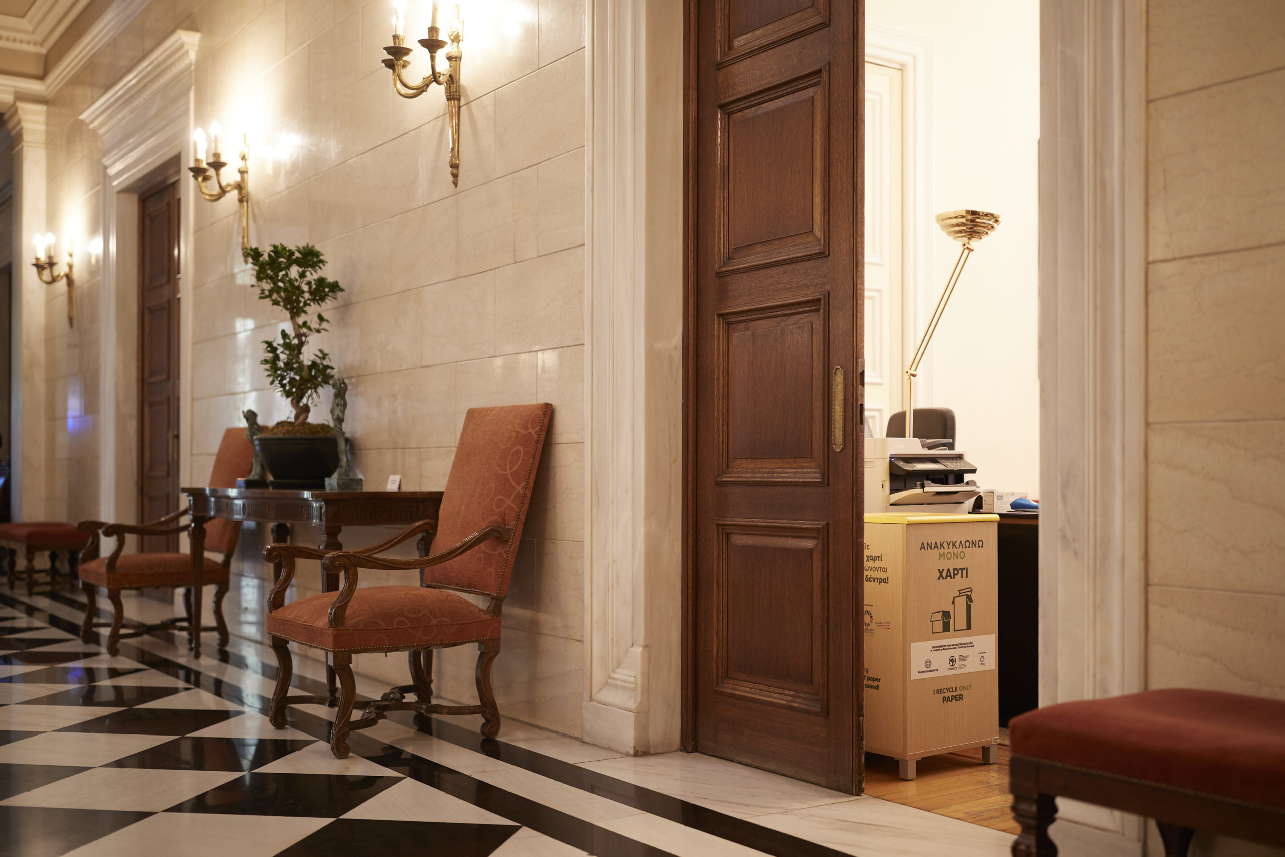Για πρώτη φορά, στο πλέον συμβολικό κτίριο της χώρας, θα υπάρχει η δυνατότητα συλλογής επιμέρους υλικών συσκευασίας (χαρτί, πλαστικό – μέταλλο, γυαλί), με την νέα Κυβέρνηση να αποδεικνύει εμπράκτως την περιβαλλοντική της ευαισθησία ενώ ταυτόχρονα να είναι η πρώτη που εφαρμόζει την σχετική νομική υποχρέωση.