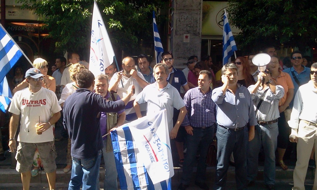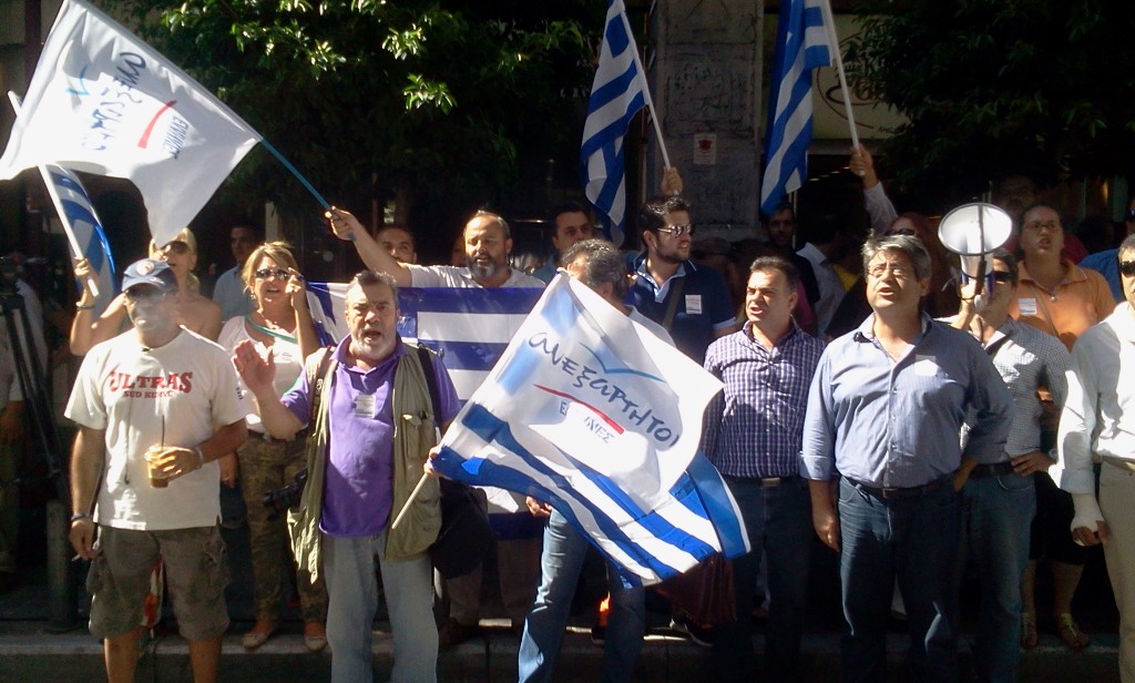 Ομάδα ατόμων που πρόσκεινται στους «Ανεξάρτητους Έλληνες» αποδοκίμασαν τα μέλη της τρόικας λίγο πριν διαβούν το κατώφλι του υπουργείου Οικονομικών.Οι διαδηλωτές στη θέα της τρόικας, άρχισαν να αποδοκιμάζουν φωνάζοντας συνθήματα για τις περικοπές και τα μέτρα λιτότητας.