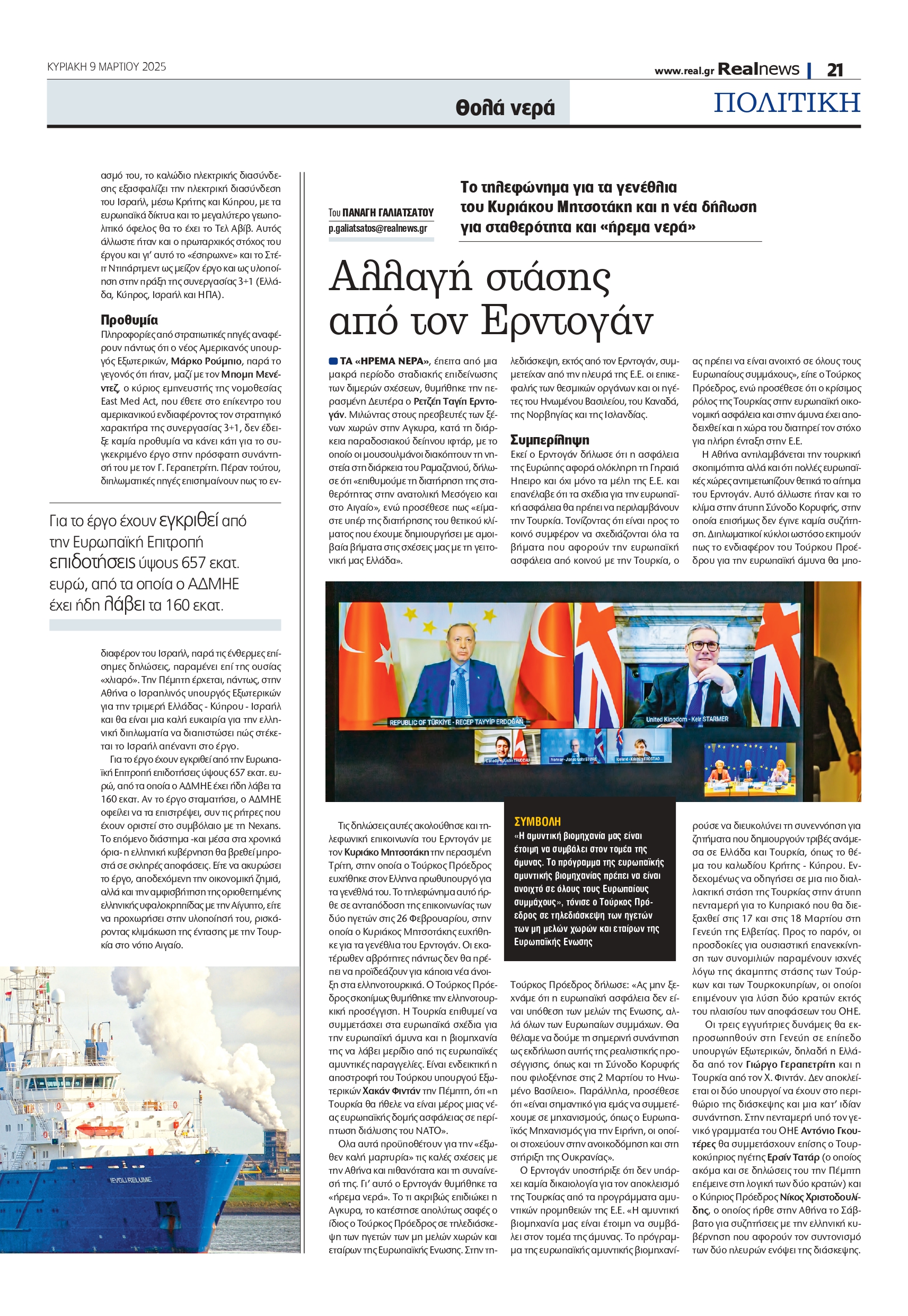 Είναι ενδεικτική η αποστροφή του Τούρκου υπουργού Εξωτερικών Χακάν Φιντάν την Πέμπτη, ότι «η Τουρκία θα ήθελε να είναι μέρος μιας νέας ευρωπαϊκής δομής ασφάλειας σε περίπτωση διάλυσης του ΝΑΤΟ». Όλα αυτά προϋποθέτουν για την «έξωθεν καλή μαρτυρία» τις καλές σχέσεις με την Αθήνα και πιθανότατα και τη συναίνεσή της.