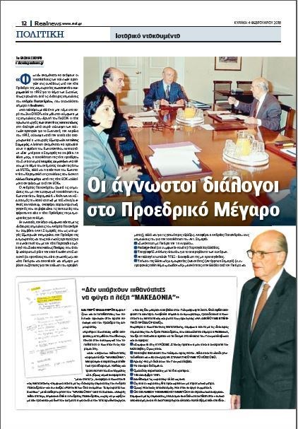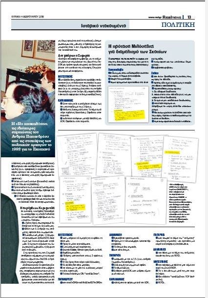 «Φωτιά» αναμένεται να ανάψουν οι τοποθετήσεις των πολιτικών αρχηγών στις συνόδους υπό τον τότε Πρόεδρο της Δημοκρατίας Κωνσταντίνο Καραμανλή το 1992 για το θέμα των Σκοπίων, όπως προκύπτει από τις ιδιόχειρες σημειώσεις του Ανδρέα Παπανδρέου, που αποκαλύπτει η Realnews.