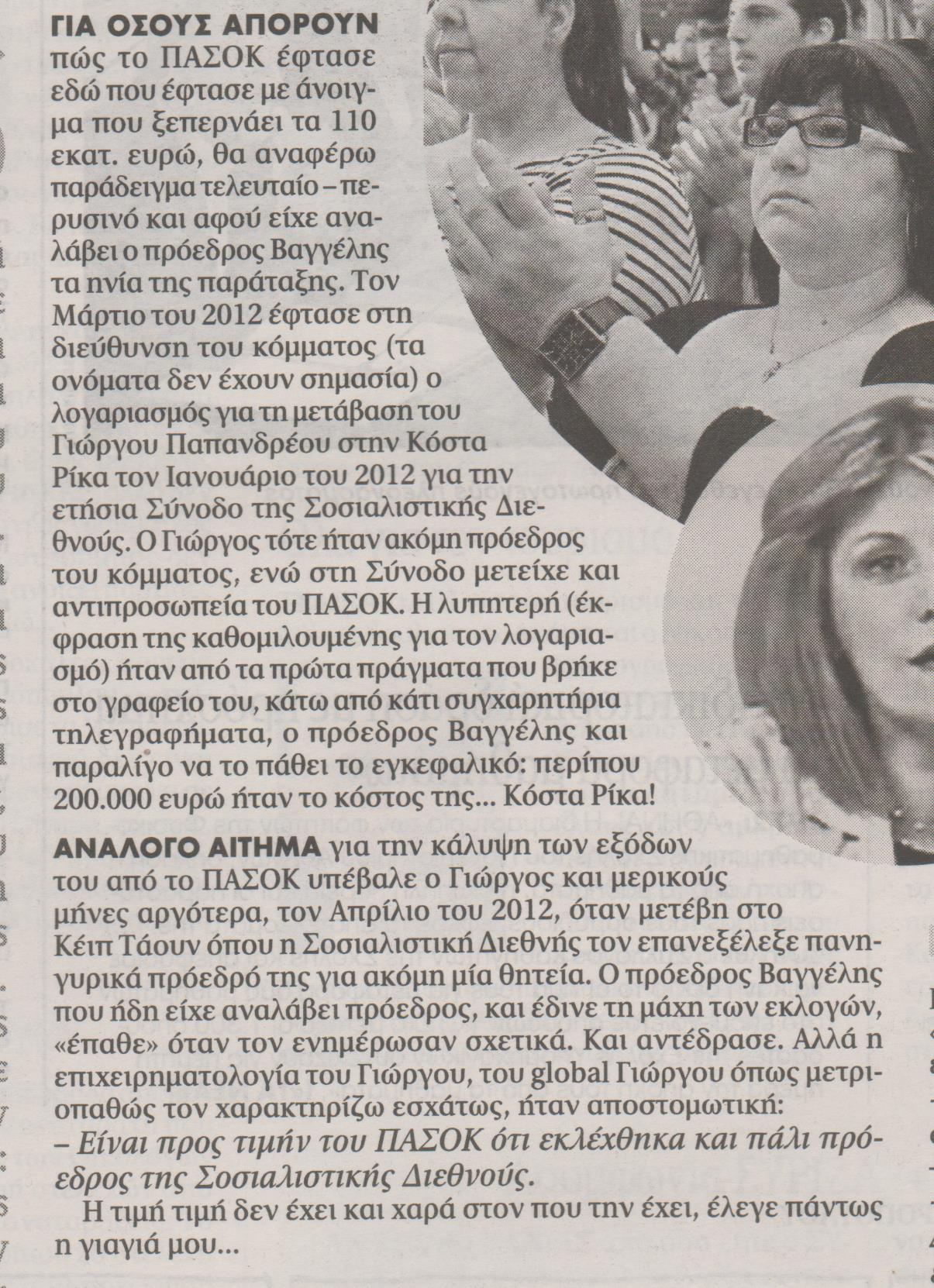 Διαβάστε στη στήλη του Γιώργου Παπαχρήστου στα Νέα για τα έξοδα του Γιώργου Παπανδρέου και την αντίδραση του Ευάγγελου Βενιζέλου.