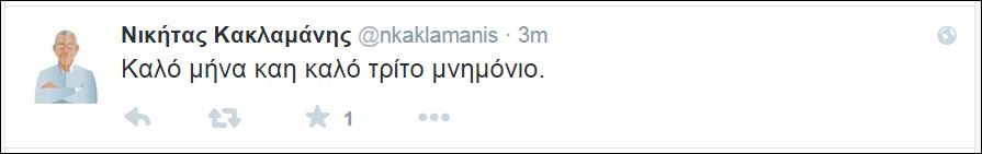 Ο αντιπρόεδρος της Βουλής και βουλευτής της ΝΔ, Νικήτας Κακλαμάνης, έγραψε πριν από λίγο στον προσωπικό του λογαριασμό στο twitter: