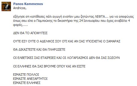 Καμμένος: Αντρίκο, θα δικαστείτε και θα πληρώσετε