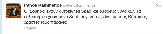 Ο Πάνος Καμμένος απάντησε μέσω twitter στον Σουηδό υπουργό Οικονομικών που δήλωσε χθες ότι στην Κύπρο θα μείνουν μόνο οι παραλίες.