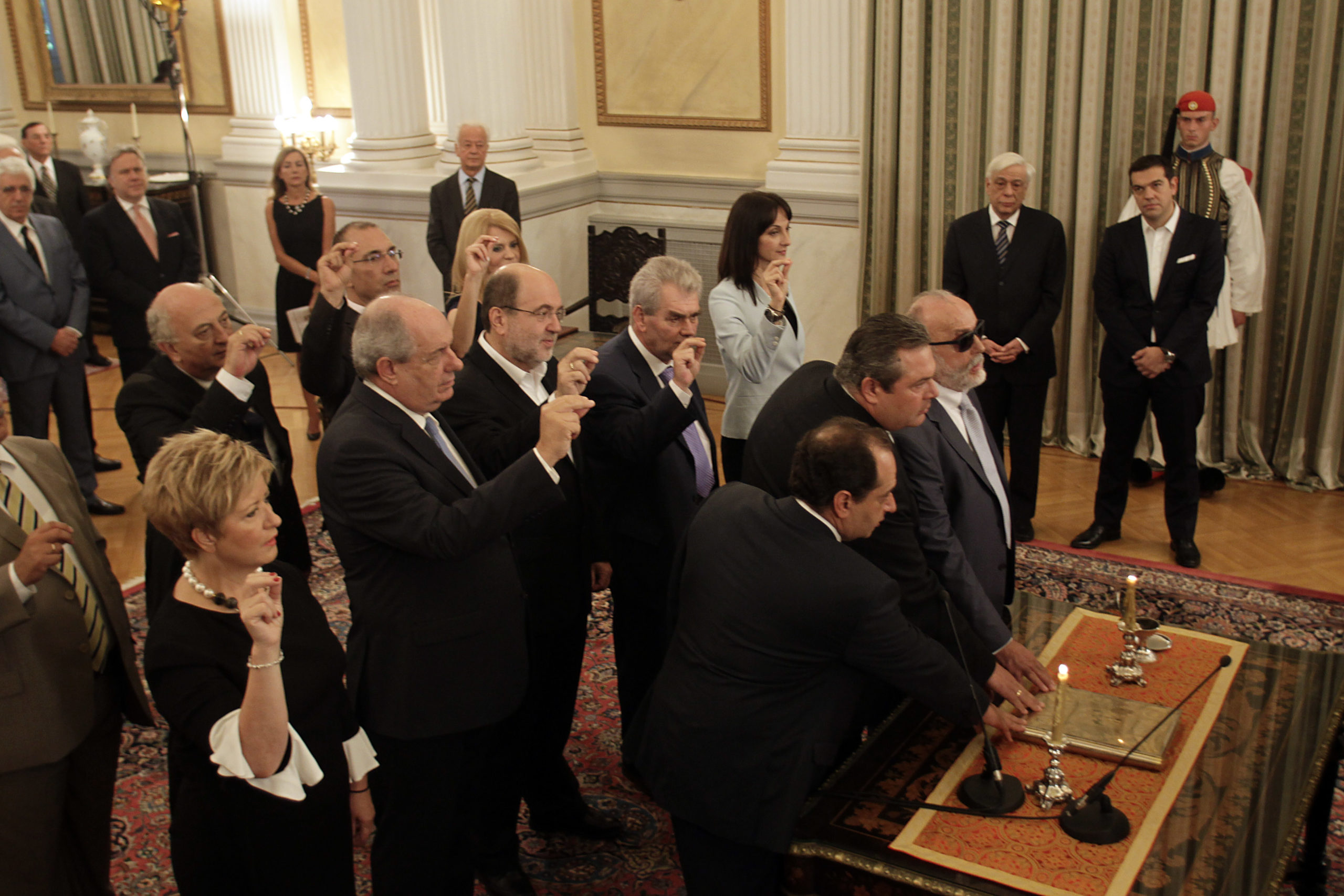 Δείτε τις φωτογραφίες από την ορκωμοσία της νέας κυβέρνησης παρουσία του Πρόεδρου της Δημοκρατίας Προκόπη Παυλόπουλου και του Πρωθυπουργού Αλέξη Τσίπρα στο Προεδρικό Μέγαρο.