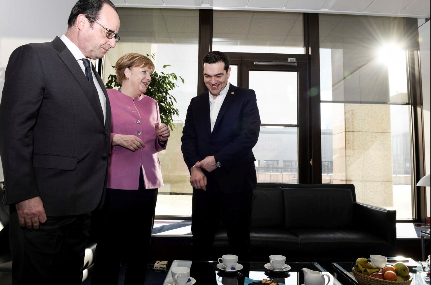 Στις Βρυξέλλες βρίσκεται ο Πρωθυπουργός Αλέξης Τσίπρας, από την Πέμπτη, στο πλαίσιο της Συνόδου Κορυφής. Δείτε καρέ καρέ τη συνάντηση που είχε με τον Γάλλο Πρόεδρο Φρανσουά Ολάντ και την Γερμανίδα Καγκελάριο Άνγκελα Μέρκελ, για το προσφυγικό.