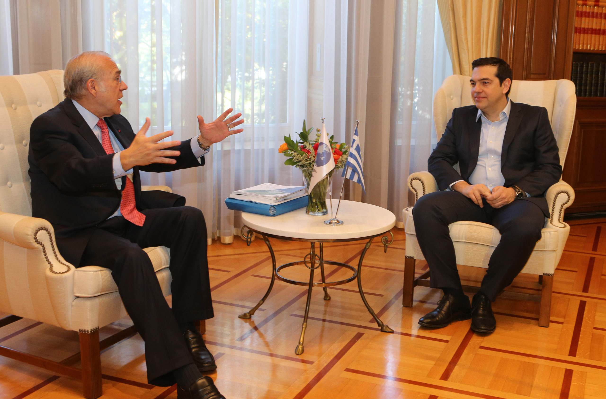Σε εξέλιξη βρίσκεται η συνάντηση του Πρωθυπουργού, Αλέξη Τσίπρα, με τον Γενικό Γραμματέα του Οργανισμού Οικονομικής Συνεργασίας και Ανάπτυξης (ΟΟΣΑ), Άνχελ Γκουρία, στο Μέγαρο Μαξίμου.
