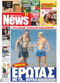 Λένε ότι όπου υπάρχει καπνός υπάρχει και φωτιά. Πολλά γράφτηκαν και ειπώθηκαν το καλοκαίρι για το ειδύλλιο του Ηλία Κασιδιάρη με την Βούλα Παπαχρήστου. Το love story ανάμεσα στον βουλευτή της Χρυσής Αυγής και της αθλήτριας του τριπλούν επιβεβαιώνει η νέα σαββατιάτικη εφημερίδα που δημοσιεύει αποκλειστικές φωτογραφίες από τις διακοπές του ζευγαριού.