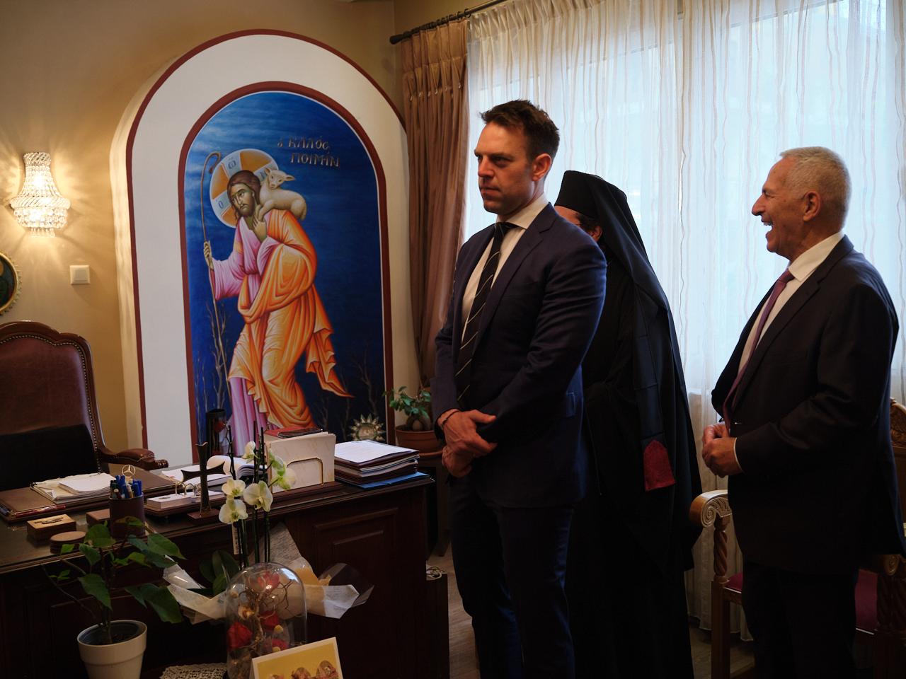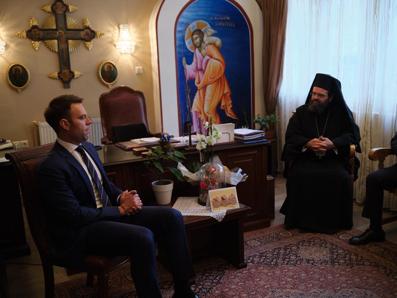 Επίσκεψη στην Ιερά Μητρόπολη Μαρωνείας και Κομοτηνής, καθώς και στην Μουφτεία Κομοτηνής, πραγματοποίησε ο πρόεδρος του ΣΥΡΙΖΑ-ΠΣ, Στέφανος Κασσελάκης, με αφορμή την παρουσία του στην Κομοτηνή, στο πλαίσιο των εορτασμών για τα Ελευθέρια της Θράκης.