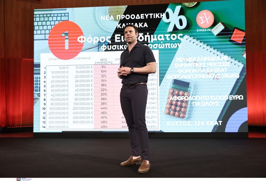 – Άνω των 200.000 ευρώ αυξάνουμε τους φορολογικούς συντελεστές, οι οποίοι φθάνουν μέχρι το 49% για όσους έχουν εισοδήματα πάνω από 900.000 ευρώ.